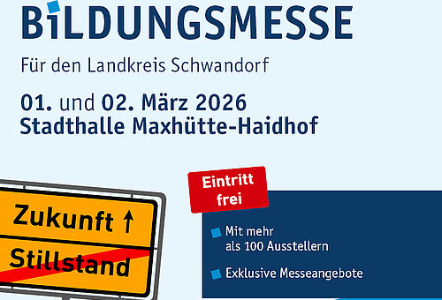 Die Bildungsmesse für den Landkreis Schwandorf findet am 01./02.03.2026 in der Stadthalle Maxhütte-Haidhof statt.