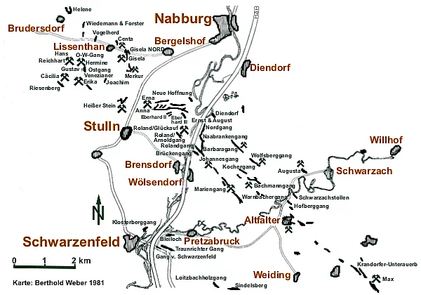 Gruben, Schächte und Stollen ehemaligen Revier Nabburg-Stulln-Wölsendorf-Schwarzach