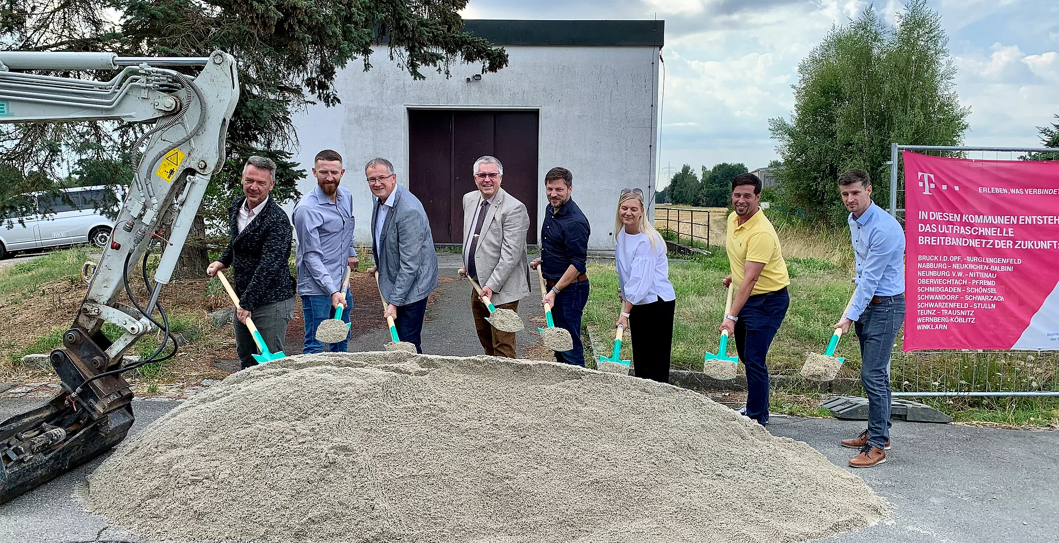 Das zeigt sich auch im Bereich der Verwaltungsgemeinschaft Schwarzenfeld. Die Tiefbauarbeiten, durchgeführt von der Firma RKE im Auftrag der Deutschen Telekom als Netzbetreiber, haben vor kurzem Schwarzenfeld, Stulln und Schwarzach b. Nabburg erreicht. Die drei Gemeinden gehören zu den insgesamt 18 Kommunen im Landkreis Schwandorf, die am Programm "Bundesförderung Breitband" teilnehmen. Ziel ist es, die sogenannten "weißen Flecken" in Sachen schnelles Internet zu schließen. Bei einem gemeinsamen Spatenstich, an dem stellvertretender Landrat Richard Tischler, die Bürgermeister Peter Neumeier und Franz Grabinger, sowie Vertreter der beteiligten Firmen teilnahmen, informierte man über das Projekt. Dabei handelt es sich um insgesamt rund 40 Kilometer Glasfaserleitungen. Die Fertigstellung der betroffenen Abschnitte ist für Ende des Jahres vorgesehen.
