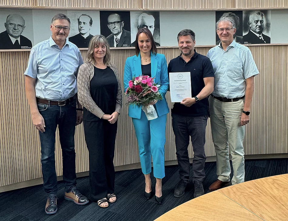 Wenn die drei Bürgermeister von Schwarzenfeld, Stulln und Schwarzach b. Nabburg sich gleichzeitig für eine Ehrung Zeit nehmen, steht ein besonderer Termin an: So geschehen im September, als die Geschäftsleiterin der Verwaltungsgemeinschaft Schwarzenfeld, Kathrin Schwarz, auf 25 Jahre Dienst im Rathaus zurückblicken konnte. Nachdem sie am 01.09.1999 als erste Auszubildende nach 12 Jahren Pause – damals unter VG-Vorsitzenden und Bürgermeister Josef Meier – zum ersten Mal Verwaltungsluft schnupperte, stieg die Schwarzacherin, die danach zunächst im Bauamt eingesetzt war, schnell auf, erwarb bald selbst die Qualifikation als Ausbilderin und wurde 2014 zur stellvertretenden Geschäftsleiterin bestellt. Schon drei Jahre später übernahm sie die Geschäftsleitung und seitdem sei, wie selbst sagt, “kein einziger Tag wie der andere”. Bei der gemeinsamen Feierstunde überreichte Schwarzenfelds Bürgermeister Peter Neumeier eine Urkunde nebst Blumen und einem Präsent, dankte für den großen Einsatz und hob in der Rückschau hervor, dass Schwarz neben vielen anderen Meilensteinen insbesondere auch die Transformation ins digitale Zeitalter miterlebt und später selbst forciert habe. Mittlerweile ist die rund 9.500 Einwohner zählende VG auf diesem Feld sogar Vorreiter, was auch das Bayerische Staatsministerium für Digitales vor einiger Zeit mit dem Siegel “Digitales Amt” bestätigte. Stullns Bürgermeister Hans Prechtl stellte die Kompetenz, das Fachwissen, das Durchhaltevermögen, die Allrounderfähigkeiten und das hohe Ansehen der Rathaus-Chefin bei den Bürgermeistern und in den Gremien heraus. “Man kann sich immer auf sie verlassen”, betonte er. Für Schwarzachs Bürgermeister Franz Grabinger ist vor allem “die Kontinuität an der Stelle der Geschäftsleitung und das geballte Wissen von unschätzbarem Wert.” Er blicke zuversichtlich in die Zukunft mit einem Verwaltungsteam samt Kathrin Schwarz an der Spitze, das gemeinsam an einem Strang ziehe.
