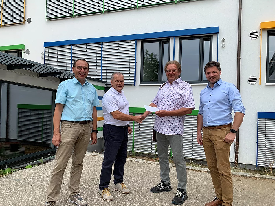 Helmut Schuster war 16 Jahre lang Rektor der Grund- und Mittelschule Schwarzenfeld, initiierte den Ausbau als Ganztagsschule und brachte die Generalsanierung mit auf den Weg, bevor er 2018 die Freistellungsphase seiner Altersteilzeit begann und feierlich verabschiedet wurde. Weil nach wie vor sein Herzblut an der Schule hängt und es ihm ein Bedürfnis ist, etwas zurückzugeben, freuten sich vor Kurzem Bürgermeister Peter Neumeier, Rektor Siegfried Seeliger und Konrektor Manfred Bösl über einen erneuten Besuch Schusters. Mit den Mitteln aus seiner Spende in Höhe von 5.000 €, für die sich Neumeier in seiner Funktion als Vorsitzender der Verwaltungsgemeinschaft als Träger herzlich bedankte, solle laut Schuster die qualitätsvolle innere Schulentwicklung weiter vorangebracht werden, wobei ein Schwerpunkt auf die Fortbildung hin zu guter pädagogischer und didaktischer Arbeit sowie ein erfülltes und vielseitiges Schulleben gelegt werden solle.