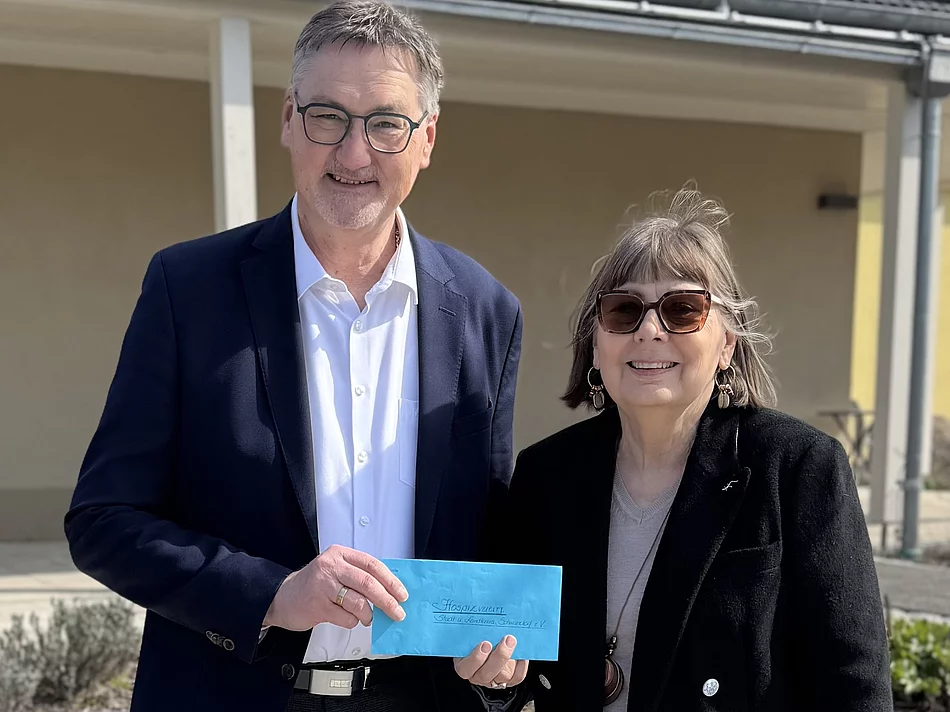 Vorsitzende Gisela Pöhler freute sich „über jeden Unterstützer und Multiplikator der wertvollen Arbeit unserer ehrenamtlichen Hospiz- und Trauer-Begleiter“ und die „hohe Wertschätzung“, die in dieser Spende zum Ausdruck kommt. „Eine Spende ist mehr als Hilfe – sie ist ein Zeichen von Menschlichkeit und Hoffnung“, zitierte sie den Spruch auf dem Briefbogen des Hospizvereins. Mit einer Tasse Kaffee und selbstgebackenem Kuchen, der dem Stullner Bürgermeister immer mundet, wurde die Spendenübergabe in eine kleine Feierstunde gepackt.