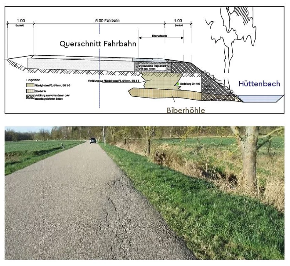 Entlang der Gemeindeverbindungsstraße (GVS) von Brensdorf nach Schwarzenfeld fließt der Hüttenbach – und mit ihm leben dort Biber. Die Tiere fühlen sich offenbar besonders wohl, denn sie graben regelmäßig ihre Höhlen unter die Straße. Diese haben Folgen: Uferböschungen, Bankette, Untergrund und Tragschichten der Straße wurden immer wieder beschädigt. Das führte zu Setzungen, Rissen und teilweise gefährlichen Fahrbahnschäden. Im Oktober rückte deshalb die Baufirma an. Die Straße wurde voll gesperrt, ursprünglich für zwei Wochen – am Ende dauerte es wegen des Ausmaßes der Schäden dreieinhalb Wochen. Bei den Arbeiten wurden sechs Biberhöhlen entdeckt, die bis direkt unter die Fahrbahn reichten. Insgesamt zählte man im 750 m langen Abschnitt rund 35 Höhlengänge. Diese wurden freigelegt, überprüft, verfüllt und anschließend mit Wasserbausteinen dauerhaft gesichert, um künftige Probleme zu verhindern. Neben der Biber-Baustelle nutzte die Gemeinde die Gelegenheit, um auch zahlreiche Straßenschäden zu beseitigen. Vor allem heruntergefahrene Fahrbahnränder und Netzrisse mussten ausgebessert werden – verursacht durch den zunehmend schweren landwirtschaftlichen Verkehr, dessen breite Fahrzeuge die Straßenränder stark beanspruchen. Die Gesamtmaßnahme kostete rund 48.000 Euro. Seit Ende Oktober ist die Strecke wieder sicher befahrbar – ob der Biber bleiben kann oder nicht, ist derzeit noch offen.