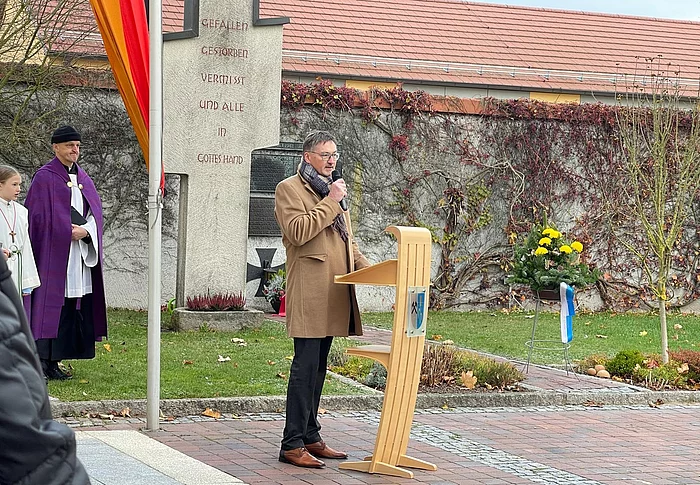Am Volkstrauertag gedachten Pfarrei, Gemeinde und Vereine nach dem Gottesdienst in der St. Barbara Kirche in einer würdigen Feier vor dem Ehrenmal der Opfer von Krieg und Gewalt. Eine Abordnung der Musikkapelle Schwarzenfeld umrahmte die Zeremonie mit Chorälen. Beim Lied vom guten Kameraden und gesenkten Fahnen wurden drei Salutschüsse abgefeuert.
