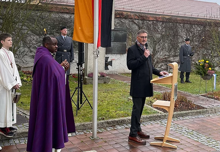 Am Volkstrauertag gedachten Pfarrei, Gemeinde und Vereine nach dem Gottesdienst in der St. Barbara Kirche in einer würdigen Feier vor dem Ehrenmal der Opfer von Krieg und Gewalt. Eine Abordnung der Musikkapelle Schwarzenfeld umrahmte die Zeremonie mit Chorälen. Beim Lied vom guten Kameraden und gesenkten Fahnen wurden drei Salutschüsse abgefeuert.